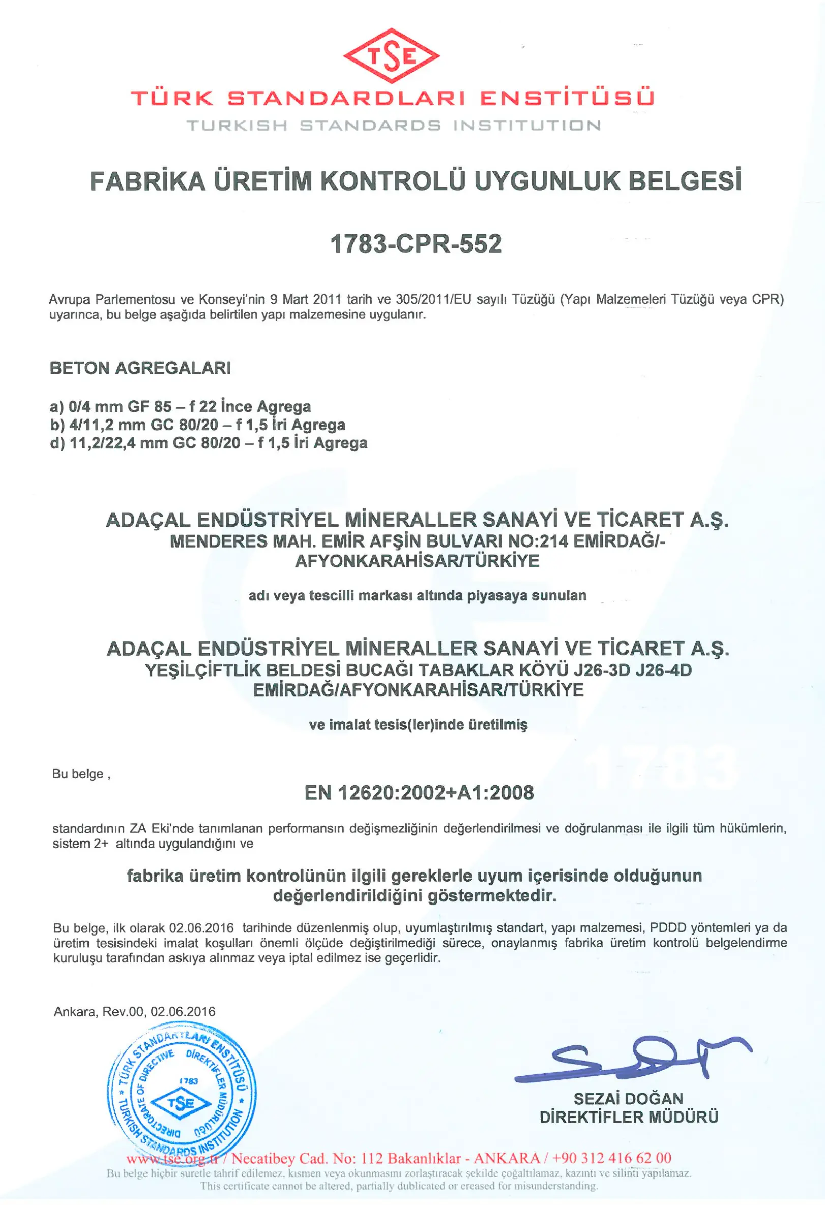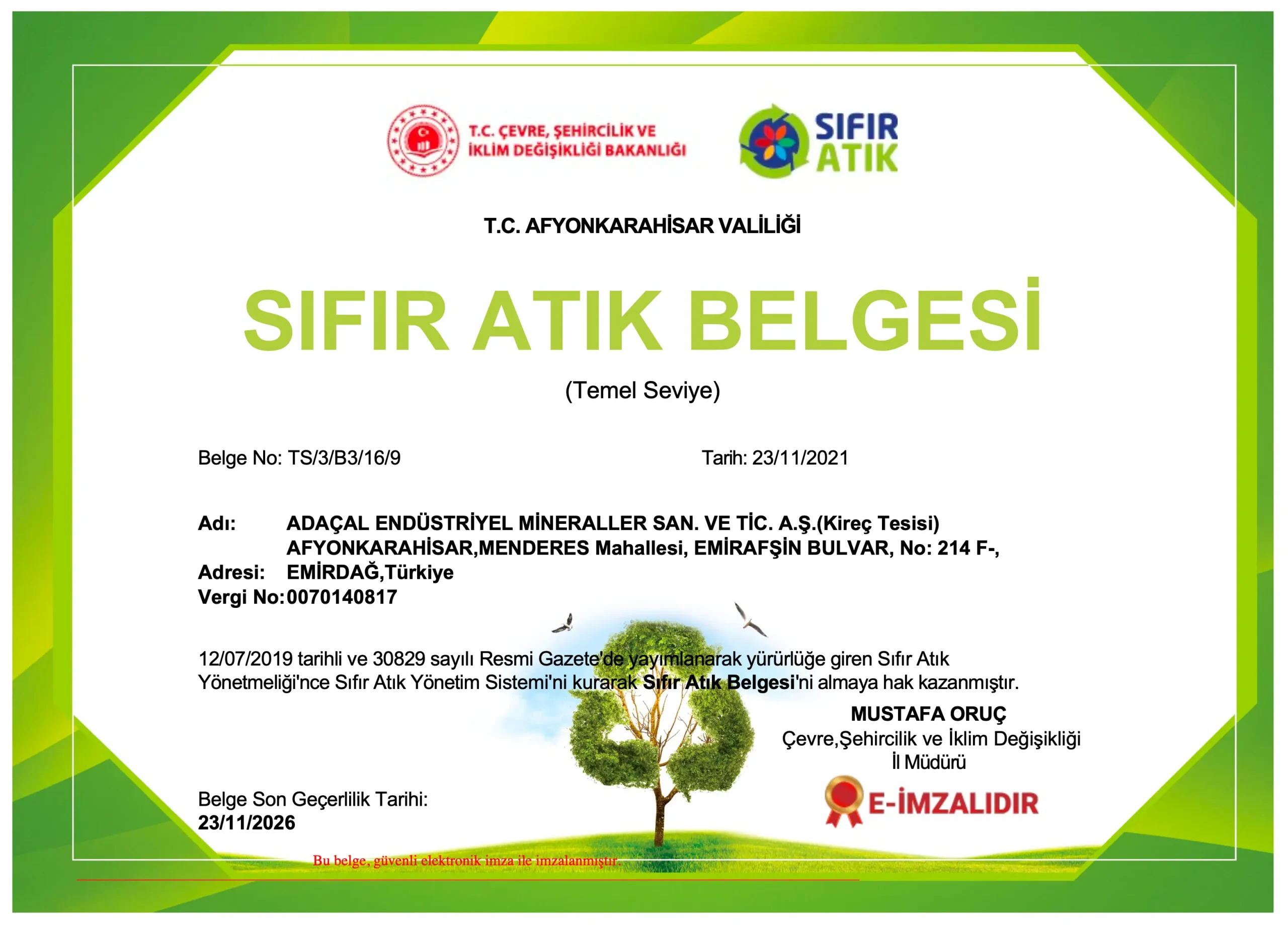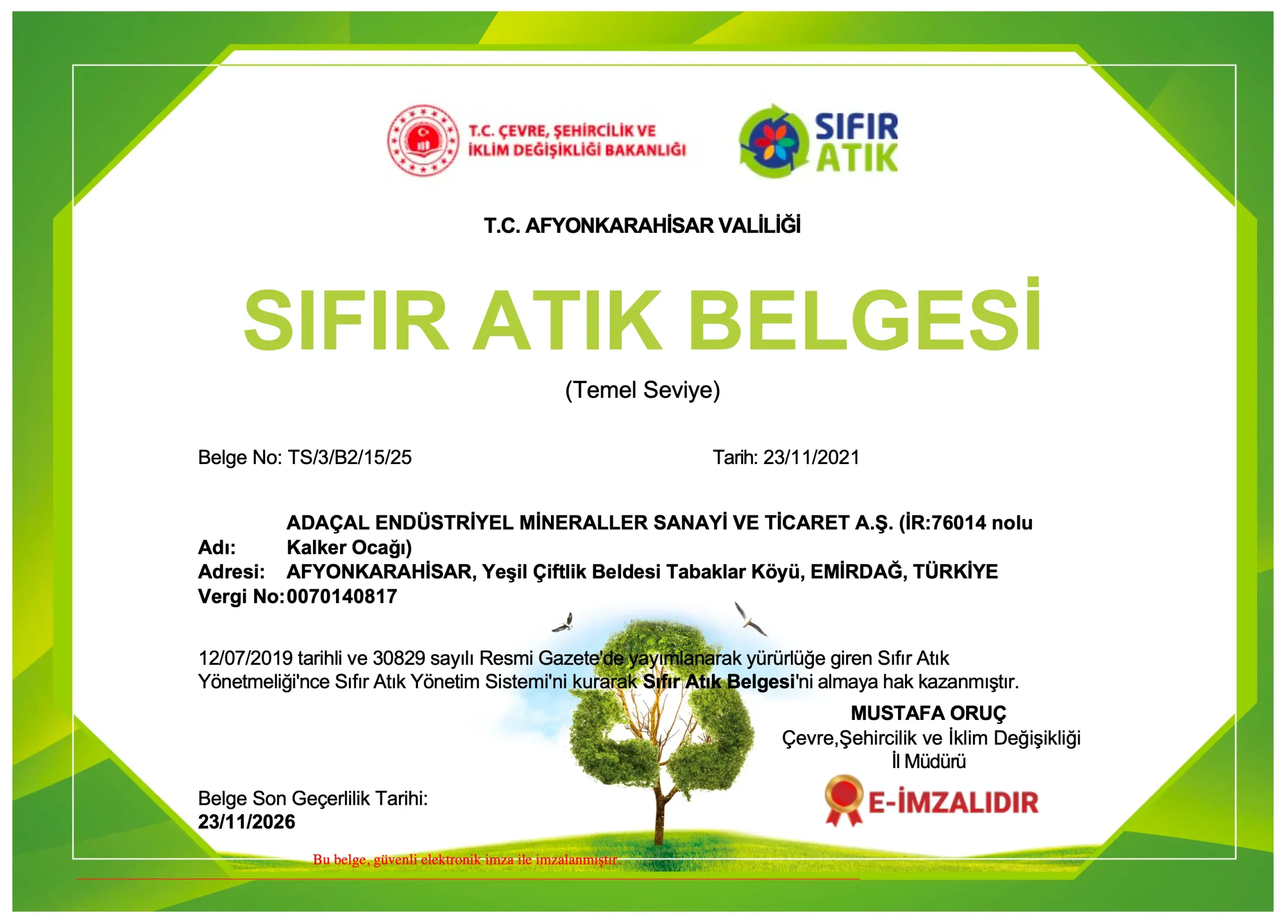 Kırma Eleme Tesisi Sıfır Atık Belgesi